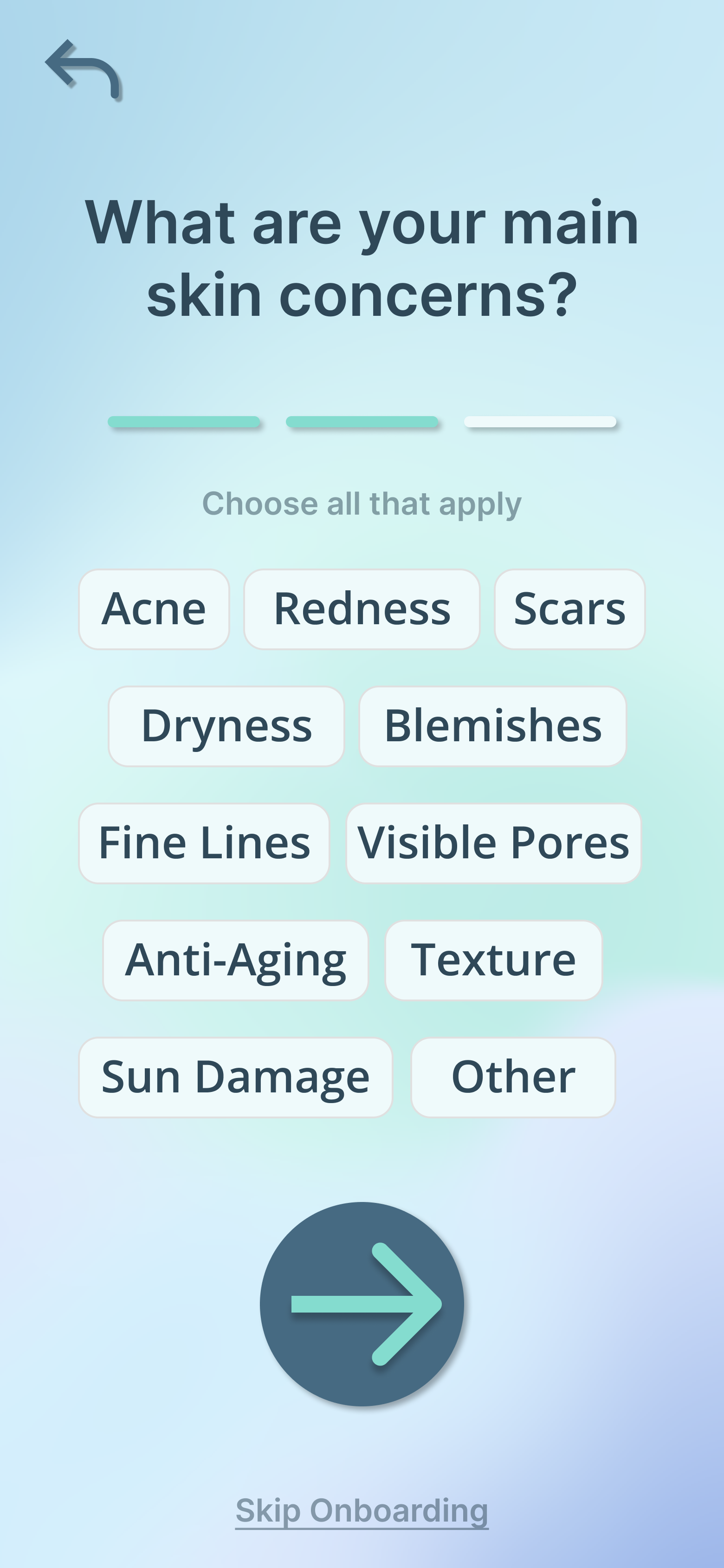 Onboarding is essential for feature rich apps: With Freshfaced the complex and disparate user flows neccesitate onboarding, it's important to guide the user, and intake certain data such as skincare type; to optimise the app for distinct users. Freshfaced would also be classified as a productivity app where users have to set goals and preferences before getting started.