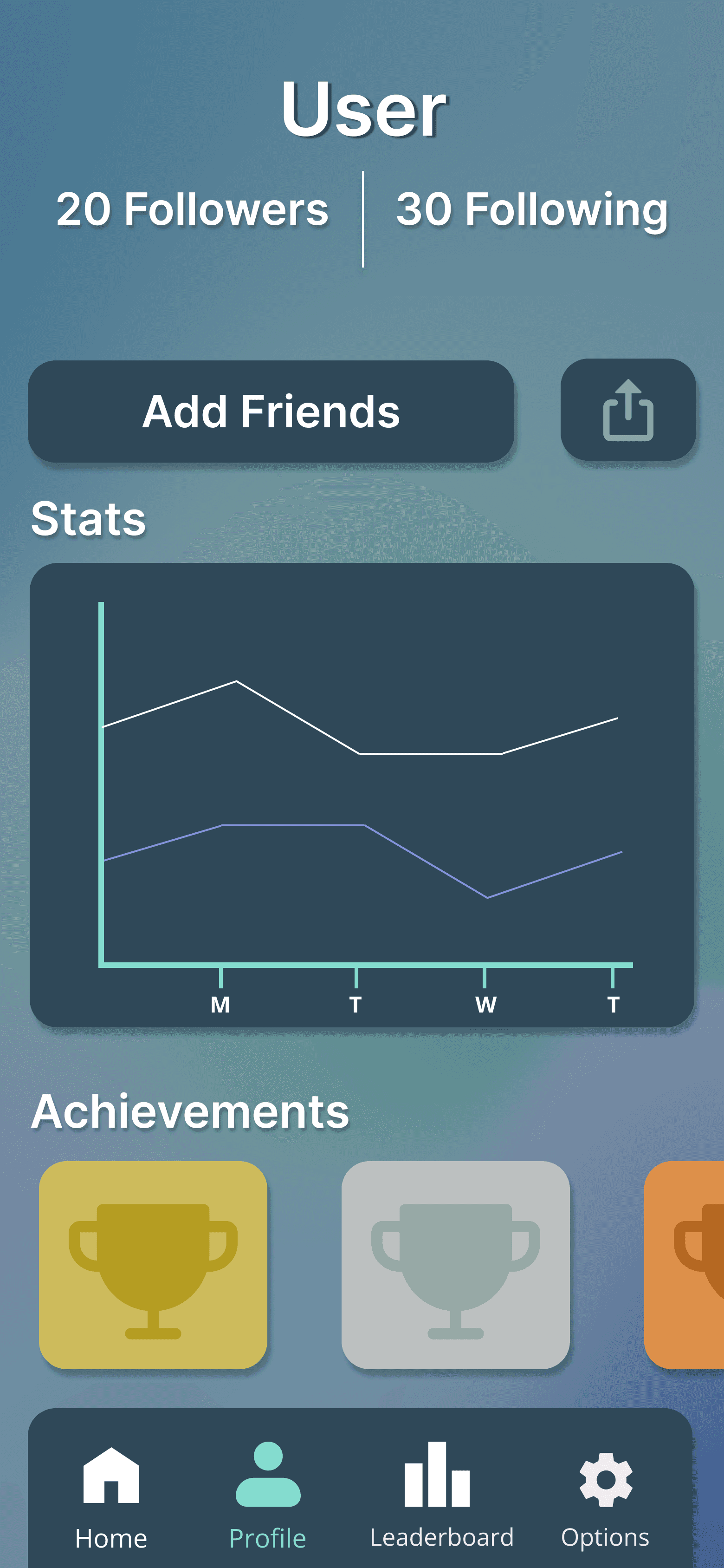 Fig. 5 - Leaderboard, profile and settings pages